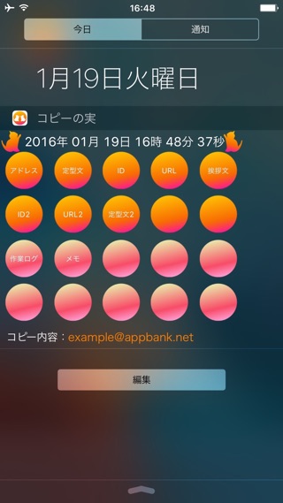 ウィジェットのボタンをタップすれば、定型文をすぐにコピー(^^!